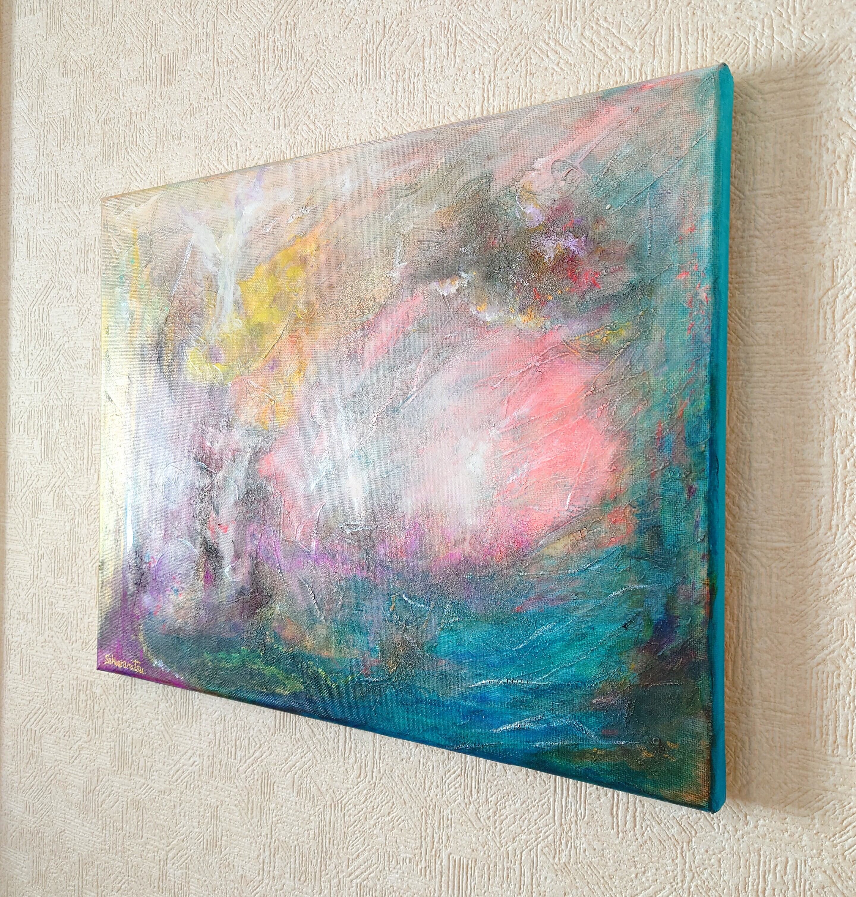 画像ではわかりにくいですが、クラック等のマチエールで神秘的な雰囲気を出しております。